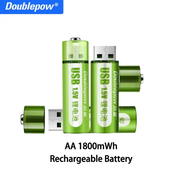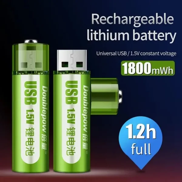 Pack de 4 Pilas Recargables por USB AA de 1800 mWh 1.5V de Iones de Litio – Energía Eficiente y Duradera para tus Dispositivos